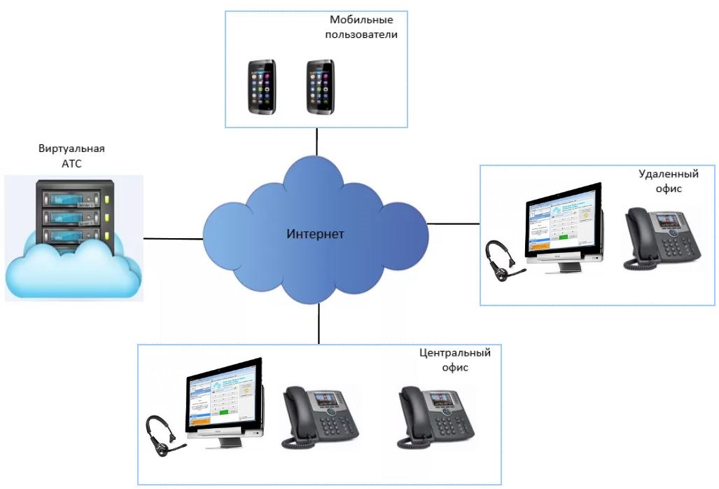 Так подключить ip телефонию в офис можно быстрее. Для этого не требуется физическая установка оборудования. Сервер виртуальной АТС размещается в облачном хранилище. За его обслуживание отвечает провайдер — мы минимизируем ваше участие в технических процессах, не связанных с бизнес-деятельностью. Компания работает с IP-терминалами, стационарными телефонами с VoIP-шлюзами. Для настройки отправки/приема сигнала используются софтфоны.